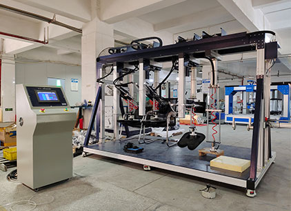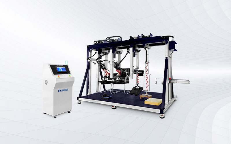 海達(dá)儀器 HD-F761 三座位沙發(fā)疲勞測(cè)試儀 可對(duì)單、雙、三工位沙發(fā)的座、背進(jìn)行耐久性及使用壽命的測(cè)試。試驗(yàn)時(shí)將一定形狀、質(zhì)量的施壓模塊,以規(guī)定的施壓形式、頻率,分別對(duì)座、背表面重復(fù)施壓,通過(guò)這一方法模擬日常生活中人對(duì)沙發(fā)座位和靠背的壓力從而測(cè)試沙發(fā)長(zhǎng)期重復(fù)性載荷的承受能力。